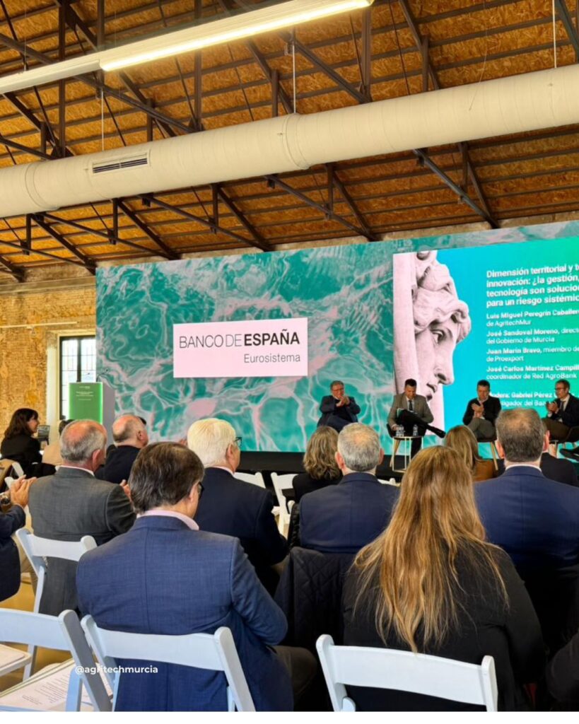 Murcia, November 28, 2025 – The president of AgritechMurcia, Luis Miguel Peregrín, participated this morning in a high-level roundtable held as part of the event “Fridays in Transition – Water as a Strategic Asset and Financial Risk”, organized by the Bank of Spain at the historic Artillery Barracks in Murcia.