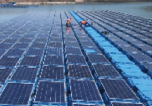 Floating Photovoltaic Plant Installation Installation of a 0.78 MW floating photovoltaic plant on an irrigation reservoir to supply power to an irrigation pumping system. 340